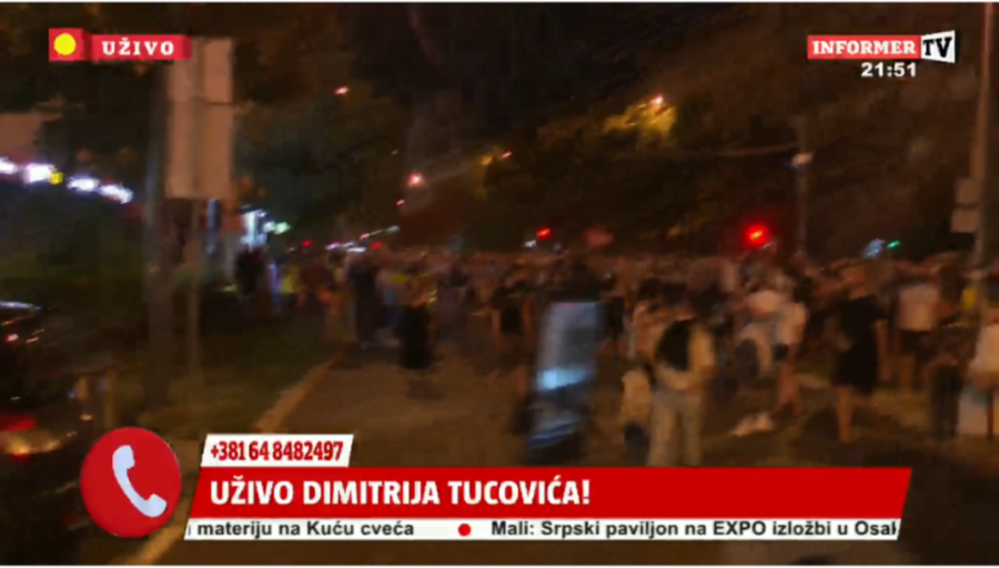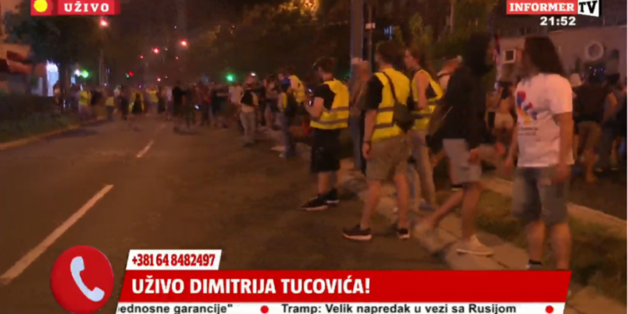 Razbijaju prostorije Srpske napredne stranke u Ulici Dimitrija Tucovića. Bacaju pirotehnička sredstva i kamenje. Dim kulja iz prostorija. Da zlo bude veće, u toj zgradi nalazi se veliki broj stanova, pa, samim tim, blokaderi-nasilnici ugrožavaju stanare.
