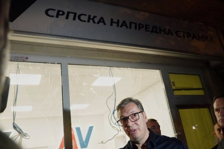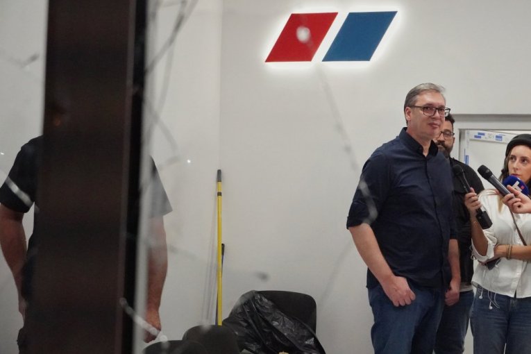 Predsednik Srbije Aleksandar Vučić obratio se građanima ispred prostorija SNS na Paliluli koje su prethodno demolirane.