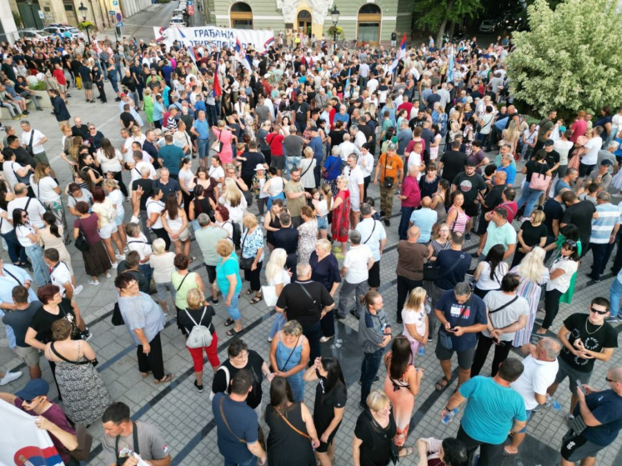 - Svi mi koji se nalazimo ovde, a i oni koji nisu ovde na trgu, da smo mi baštenici tradicije carskog grada Sirmijuma. Moja poruka je da samo zajedno možemo da pobedimo sve tegobe ovog vremena u interesu Srbije, u interesu srpskog naroda i svih građana koje žive u ovoj državi - rekao je jedan čovek na skupu.