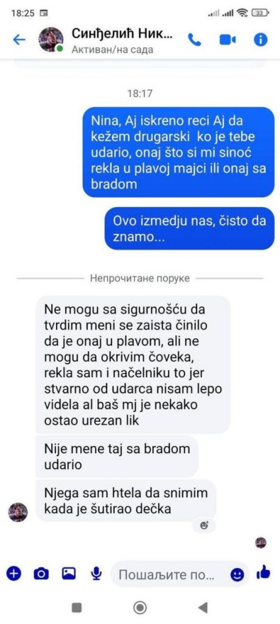 NIKOLINA SINĐELIĆ SAMA SEBE DEMANTOVALA! Isplivala njena prepiska: Nisam lepo videla ko me je udario (FOTO)