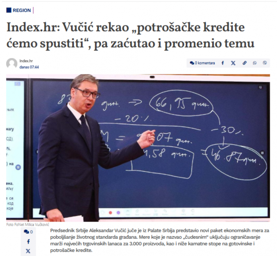 Takođe, Danas se, kao i mnogo puta dosad udružio sa Hrvatima u napadima na sopstvenu zemlju, pa ne čudi što je preneo tekst hrvatskog Indeksa, koji je pokušao da na brutalan način diskredituje sve ono što je predsednik Vučić juče govorio. Podrazumeva se, reč je o čistim lažima.