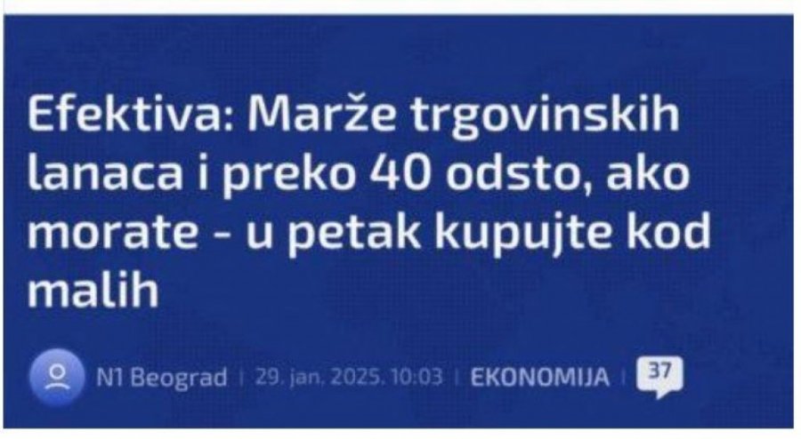 Nekoliko primera - N1 je objavio u januaru ove godine tekst pod naslovom: "Marže trgovinskih lanaca i preko 40 odsto, ako morate - u petak kupujte kod malih".