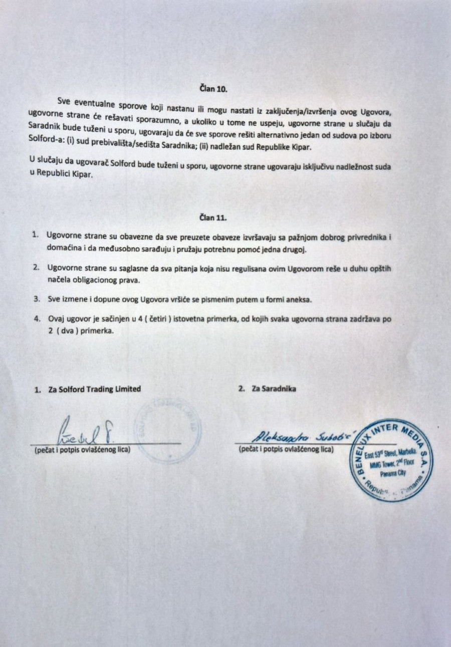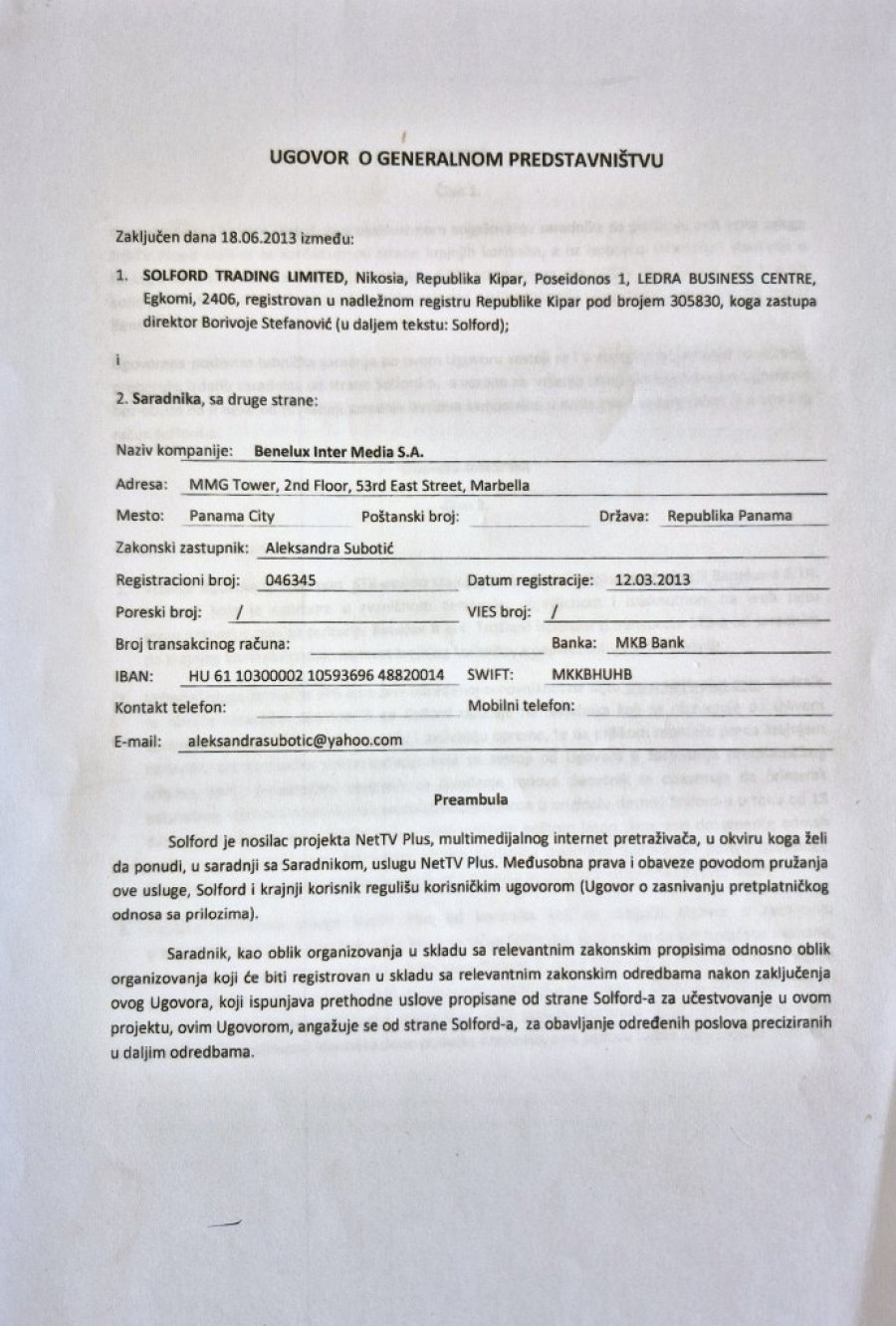 - Uvidom u poslovanje ove kompanije utvrđeno je da je postojao fiktivni ugovor kojim je firma koja je u vlasništvu Aleksandre Subotić od 2013. izvlačila milione evra iz NetTV. O tome sam razgovarao sa nekadašnjim vlasnicima i gospodinom Milerom i ukazao da ćemo zbog ovih sumnji pokrenuti istragu pred nadležnim organima o postupanju Aleksandre Subotić i da ćemo tražiti da načinjena šteta bude nadoknađena, pre svega "Telekomu Srbija", a ako oni žele da se pridruže gonjenju i "Junajted grupi", budući da su fiktivni ugovori postojali poslednjih 12 godina.