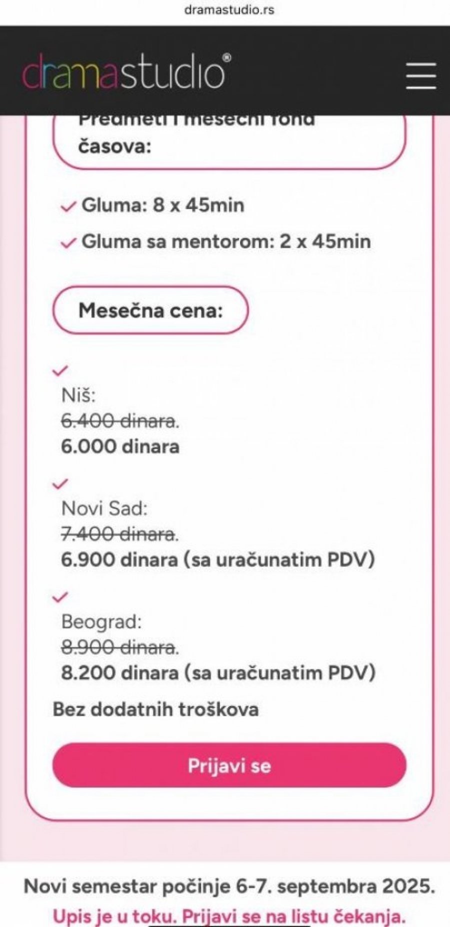 Najglasniji u kritici državnog školstva i univerziteta, istovremeno u medijima i na društvenim mrežama agresivno promovišu svoju privatnu školu glume - "Drama studio", s filijalama u Beogradu, Novom Sadu i Nišu. Dok s jedne strane ruše ugled javnih ustanova i nastavnika koji rade u školama, s druge strane, uz parolu: "Upis je u toku", pozivaju polaznike da plaćaju po od 6.000 do 8.200 dinara mesečno za časove koje vode poznata glumačka imena.