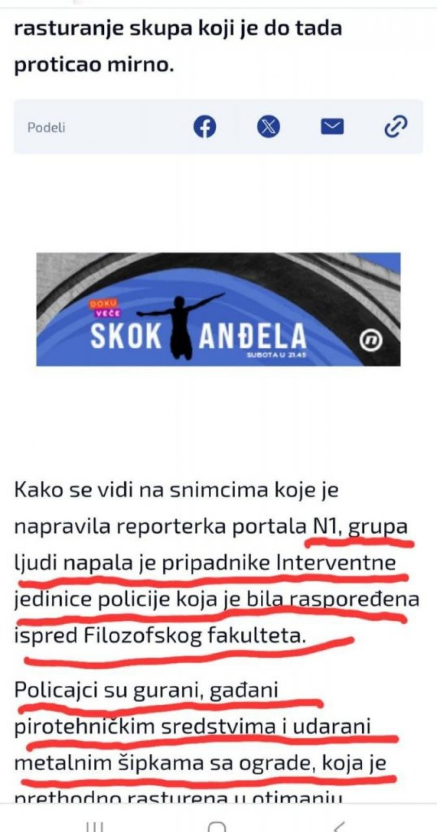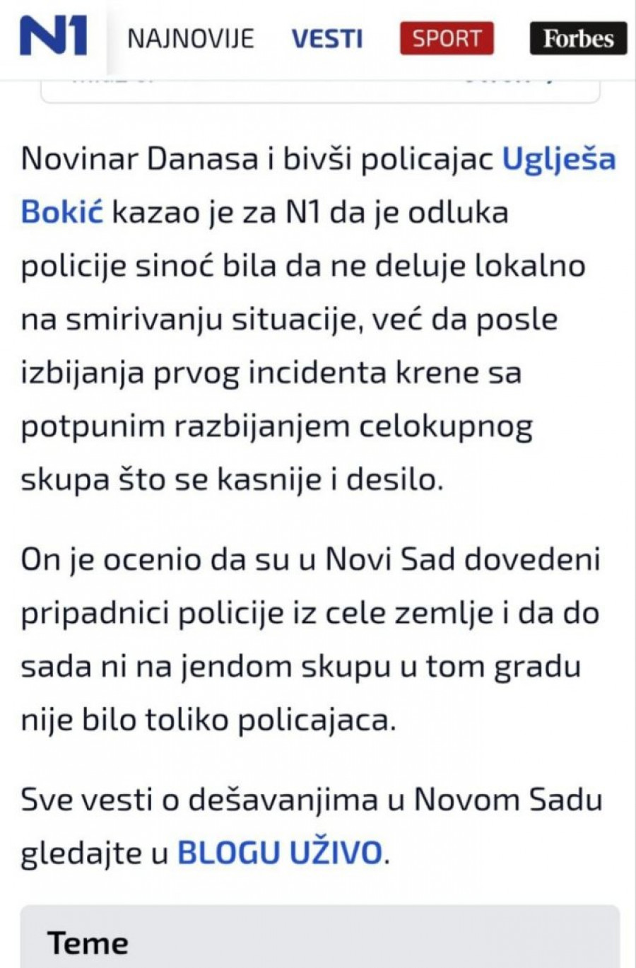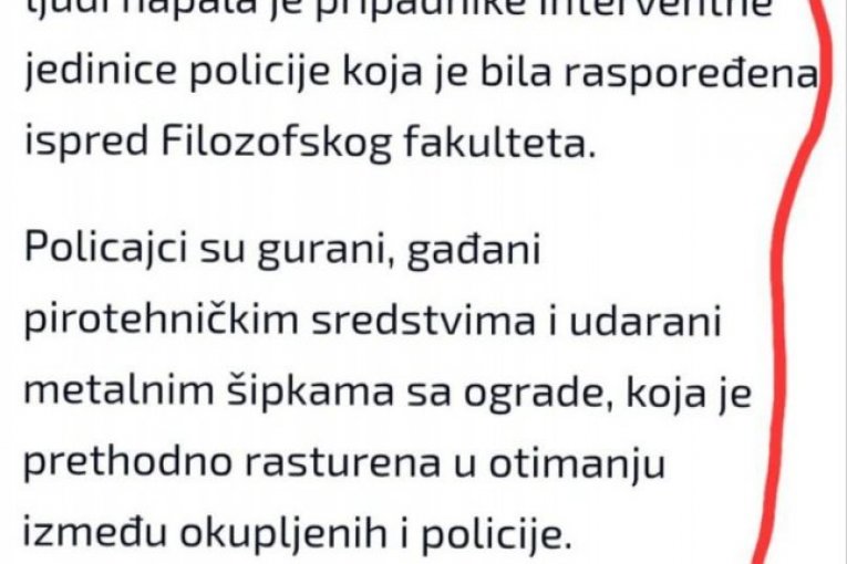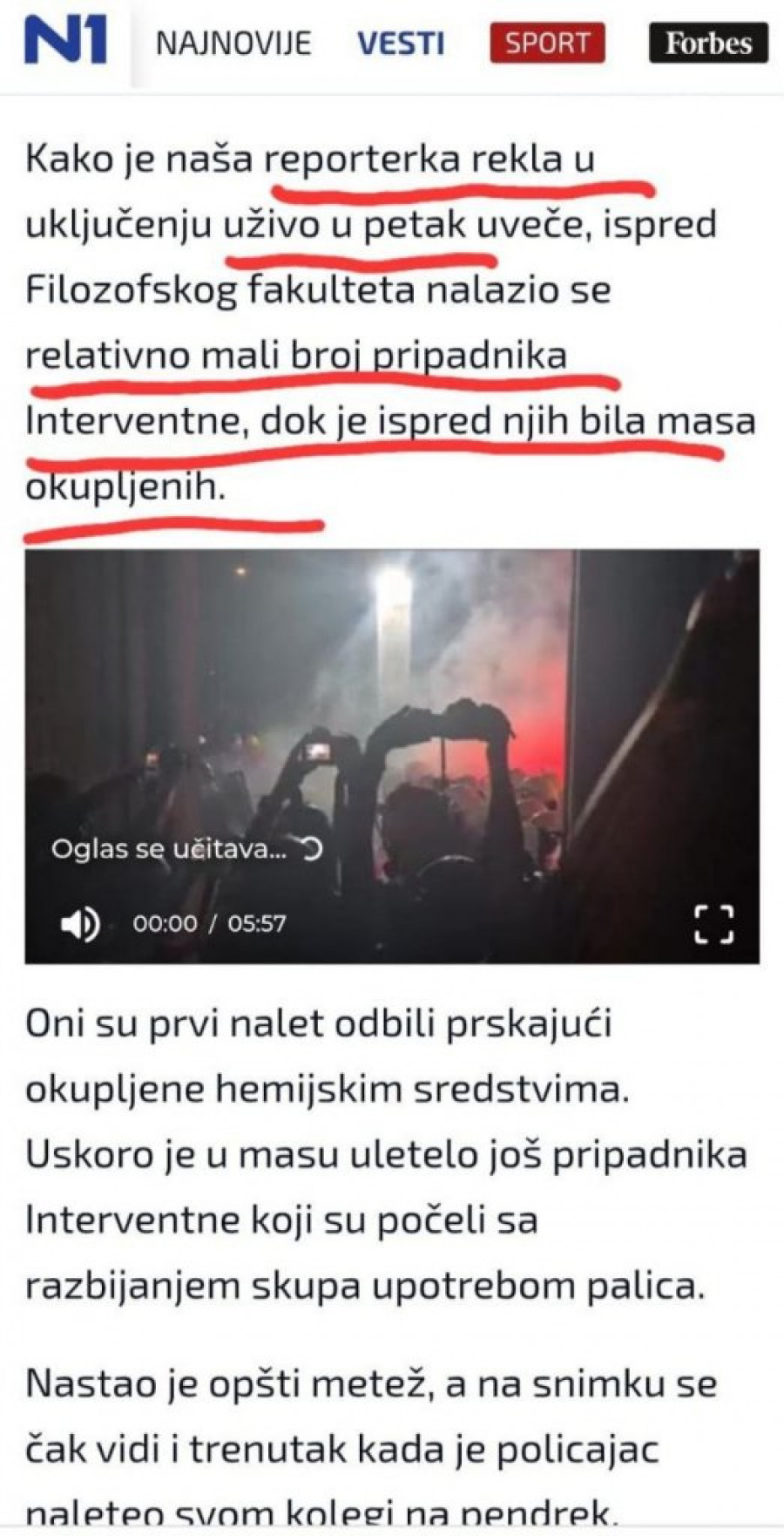 I medij naklonjen opoziciji, poput N1, Nova S prenela je ovu vest. Više nema sumnje (ako je i bilo), policija je napadnuta, a uzvratila je tek nakon više od 10 minuta iživljavanja i stravičnog terora.