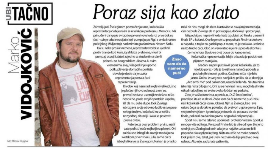 Vidojković u svom tekstu slavi poraz košarkaša na Evrobasketu.