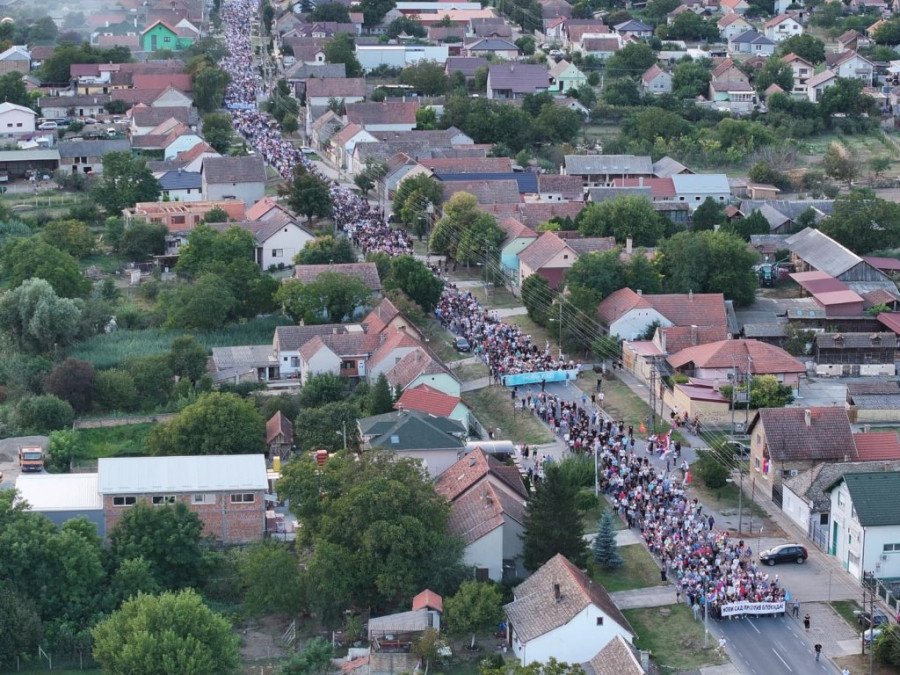 Veliki broj građana bio je na okupljanju u Kaću gde je na početku kolone bio istaknut baner "Novi Sad je protiv blokada", a prisustvovao je predsednik SNS Miloš Vučević.