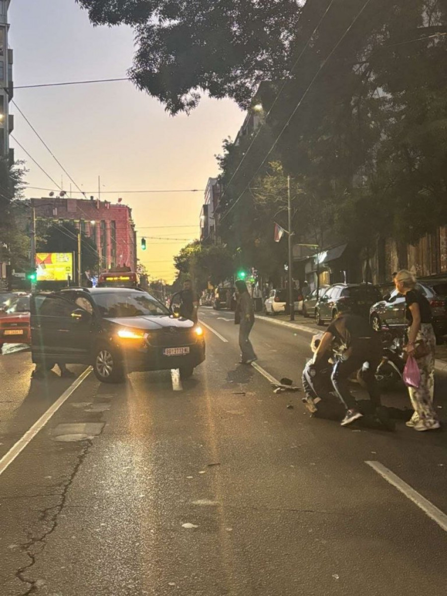 Kako se saznaje, nesreća se dogodila večeras oko 19 časova u Takovskoj ulici kod broja 12. Tada je oboren službeni motocikl na kom je bio D. O. (28) policajac u uniformi na zadatku.