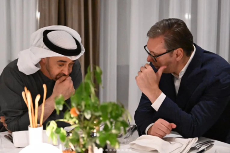 Predsednik Srbije Aleksandar Vučić ugostio je večeras predsednika Ujedinjenih Arapskih Emirata šeika Mohameda bin Zajeda Al Nahjana, koji boravi u poseti Srbiji.