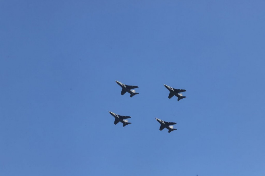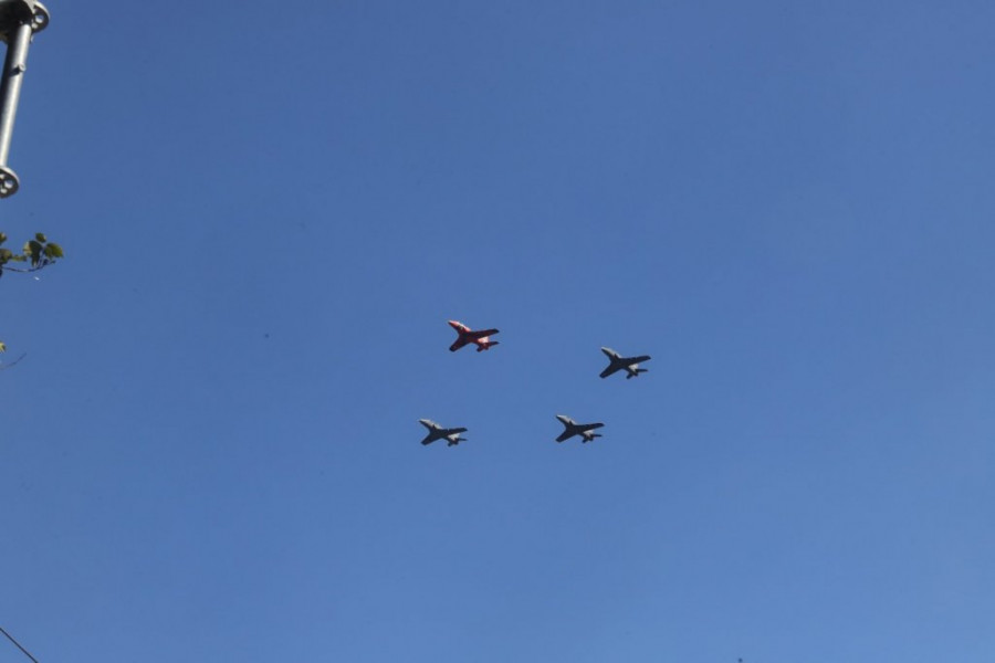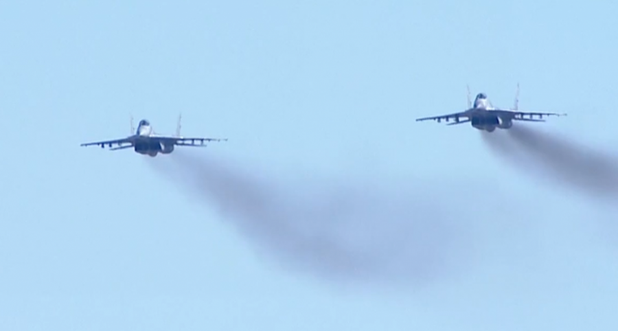 U nastavku parade prikazan je atraktivan nalet vazduhoplovnog ešelona u čijem sastavu su bili avioni poput modernizovanih MiG-29 i „Orao“, „Super galeb“, C-295 CASA, An-26, „pajper seneka“, „lasta“, kao i helikopteri H-145, Mi-17, Mi-35M, „super puma“, „Gazela“, „Gama", a nalet je upotpunio zajednički prelet aviona MiG-29 i francuskih „Rafala“.