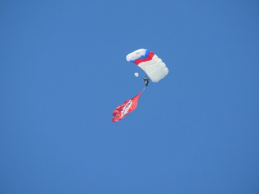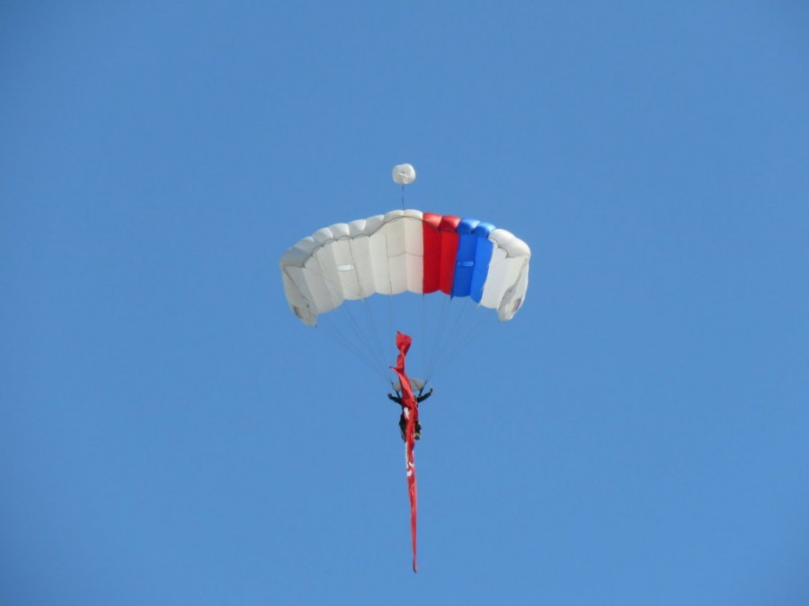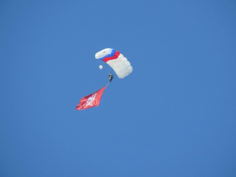 Kraj vojne parade uveličao je padobranski skok pripadnika 63. padobranske brigade koji su nosili zastavu Republike Srbije i Vojske Srbije uz završni pozdrav aviona MiG-29.