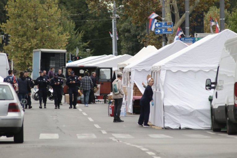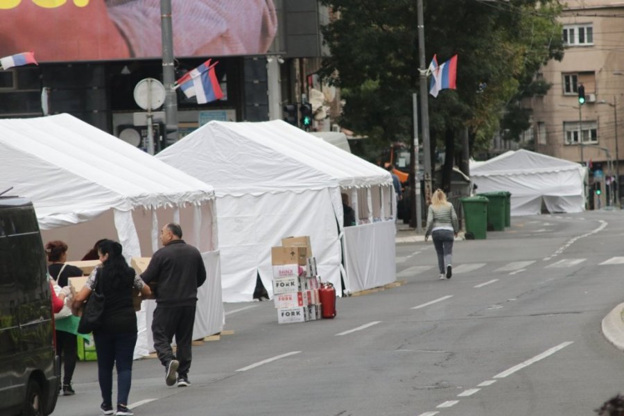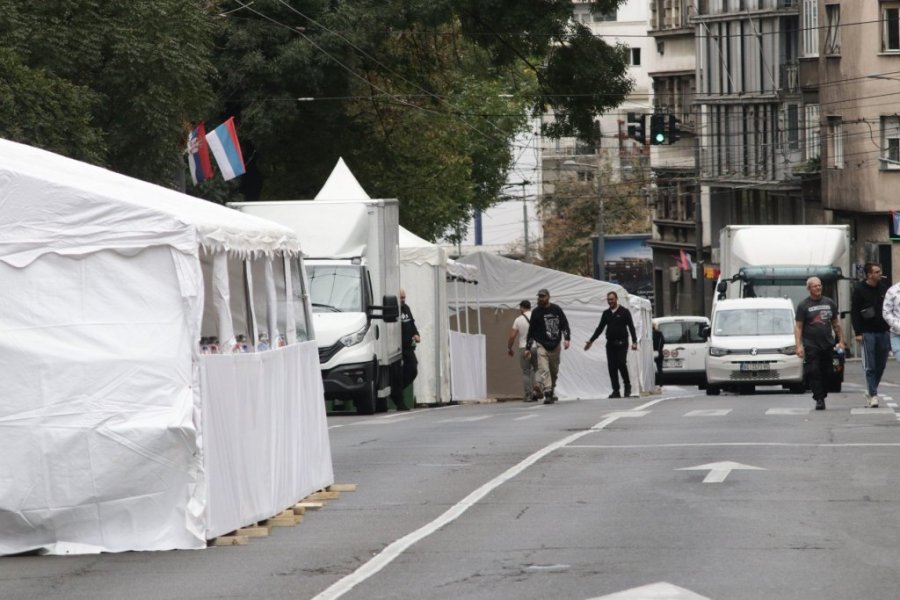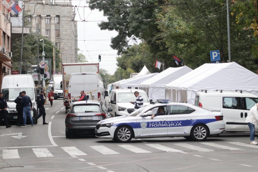 Na ovom delu postavljeni su šatori i ozvučenje u okviru priprema za protest "Građani protiv blokada", dok policija reguliše kretanje vozila i pešaka, posebno na raskrsnicama s Kosovskom i Svetogorskom ulicom.