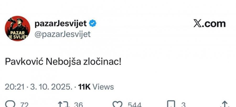 Sramna poruka osvanula je na X-Tviter nalogu vođe blokadera iz Novog Pazara.