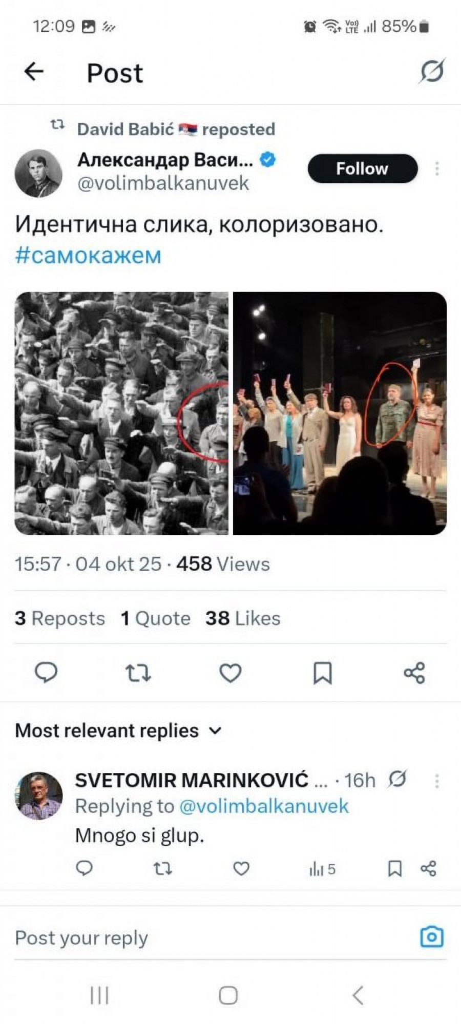 - To što vas boli gest Nenada Jezdića dokazuje da ste za totalitarno jednoumlje.