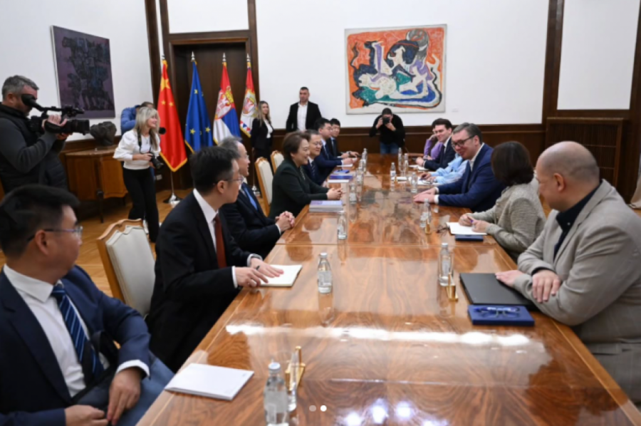 Predsednik Srbije Aleksandar Vučić sastao se danas sa članovima delegacije Kineskog instituta za međunarodne studije na čelu sa predsednicom tog instituta i generalnim sekretarom Istraživačkog centra diplomatske misli Si Đinpinga, Čen Bo, kojoj je zahvalio na trajnom doprinosu razvoju sveobuhvatnog strateškog partnerstva Srbije i Kine.