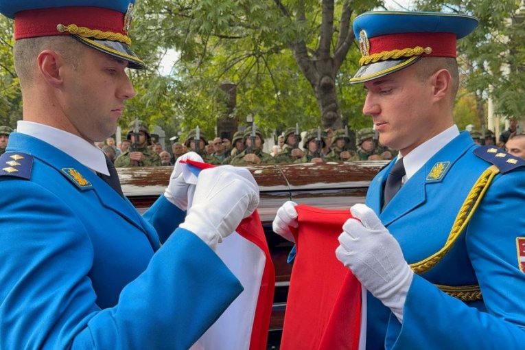 Kovčeg Nebojše Pavkovića prekriven je srpskom počasnom zastavom, baš kako dolikuje ovakvom generalu.