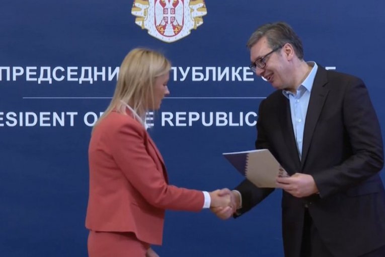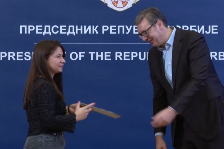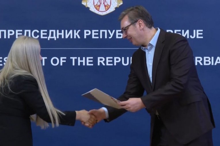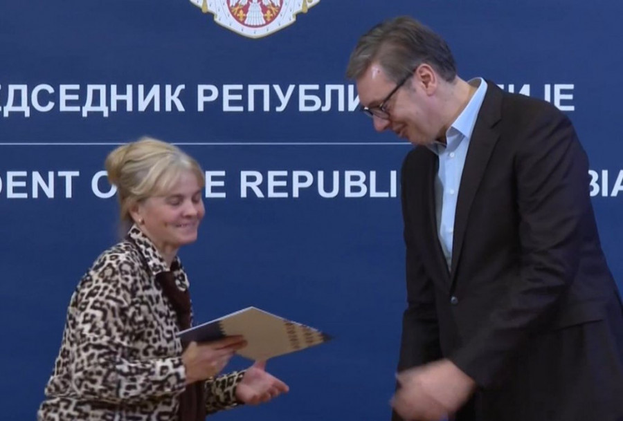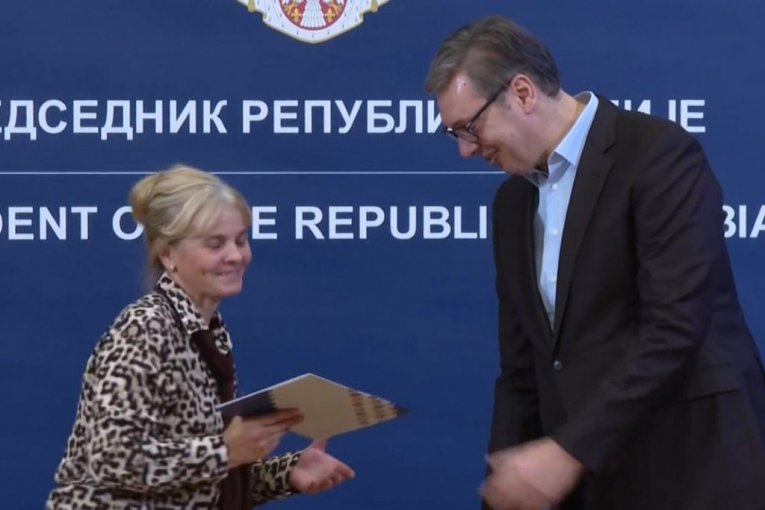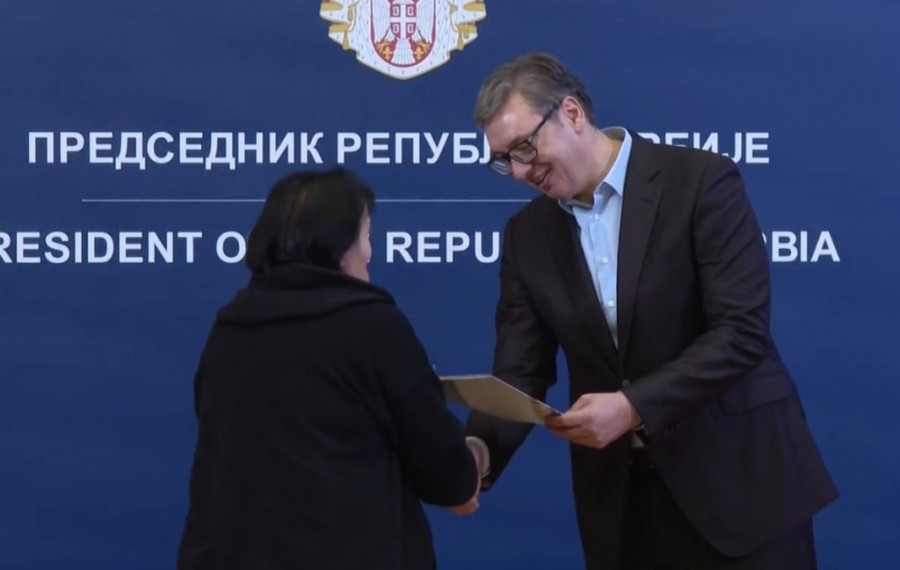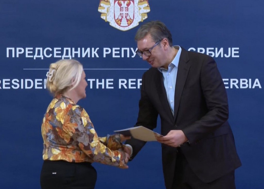 Predsednik Srbije Aleksandar Vučić učestvovao je na svečanoj dodeli rešenja ženama preduzetnicama dobitnicama sredstava po programu podrške za razvoj preduzetništva žena na selu u 2025. godini.