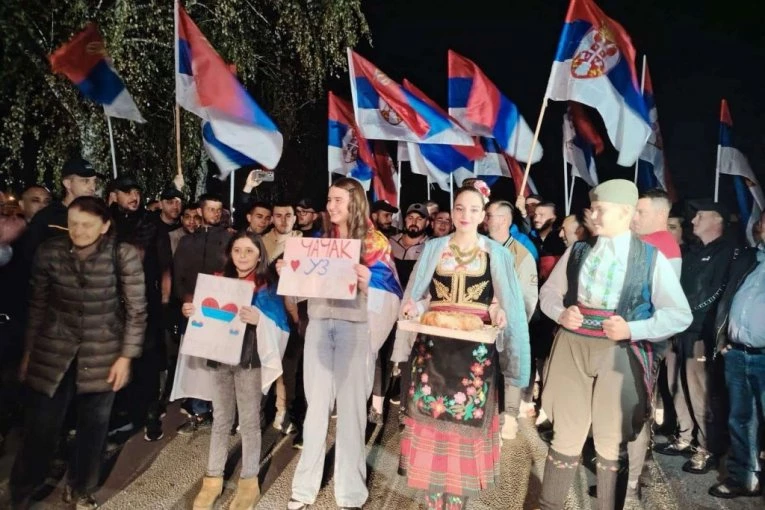 Više od 1.500 Čačana večeras je u Preljini dočekalo Srbe sa Kosova i Metohije koji već tri dana pešače na veliki narodni skup u Novom Sadu protiv blokada.