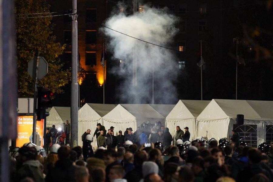 Nedaleko od Skupštine Srbije sinoć je došlo do tenzija kada je grupa građana koja se okupila, navodeći kao razlog podršku Dijani Hrki, koja na tom mestu štrajkuje glađu i njene zahteve, gađala i vređala policiju i okupljene građane na platou koji su protiv blokada.