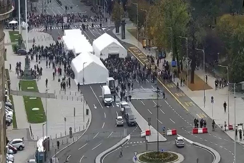 U kampu kod Skupštine Srbije okupljaju ljudi, a dve grupe građana odvaja kordon policije.