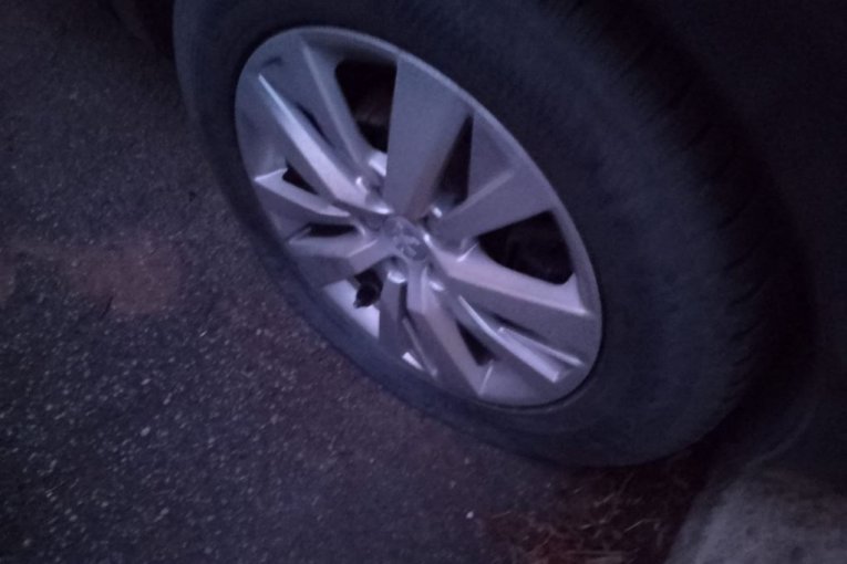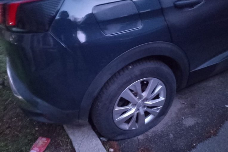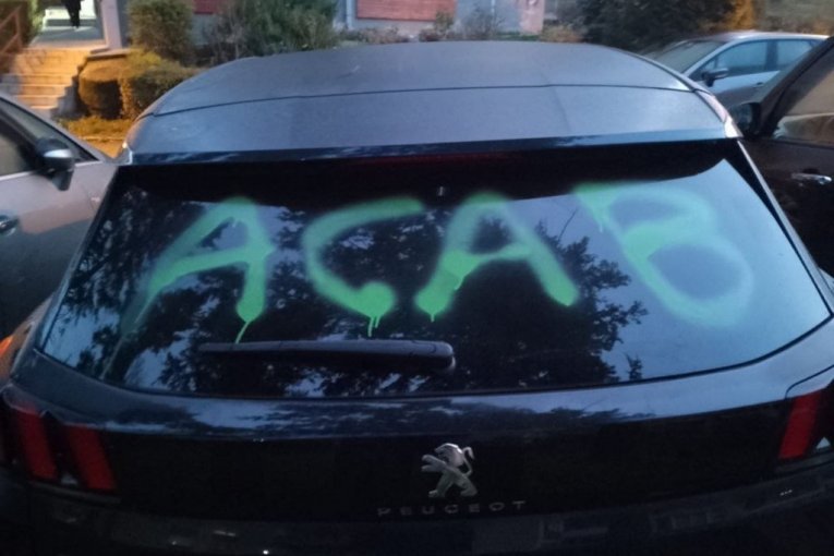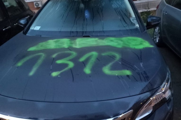 Potpuno je išarana hauba na kojoj piše 1312, a na zadnjem staklu napisano je velikim slovima ACAB, takođe su isečene gume.