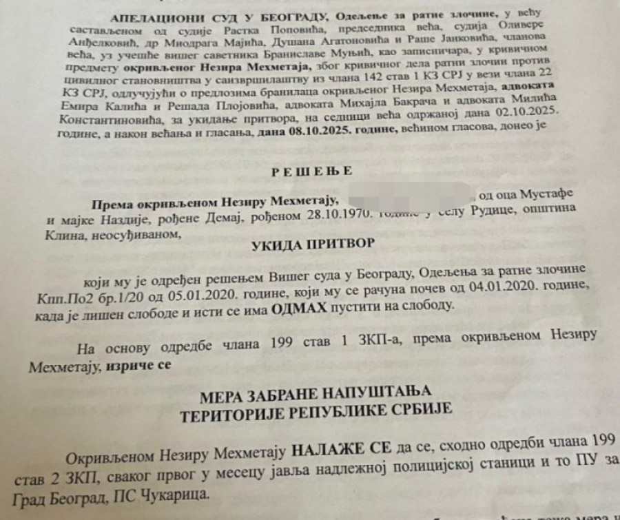 Nezir je odmah "nestao" i čim ga je blokaderski sudija Majić pustio iz pritvora - momentalno zbrisao u tzv. državu Kosovo bez traga i glasa.