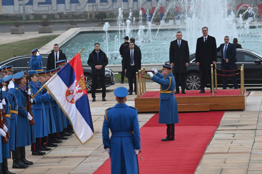 Sve je onako kako visoki gost i dobar prijatelj zaslužuje. Predsednik Vučić je ispred Palate Srbija dočekao dragog gosta, predsednika Slovačke. Uslediće razgovori, čućemo šta planiraju dva predsednika.