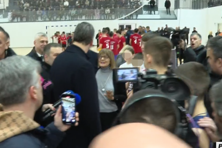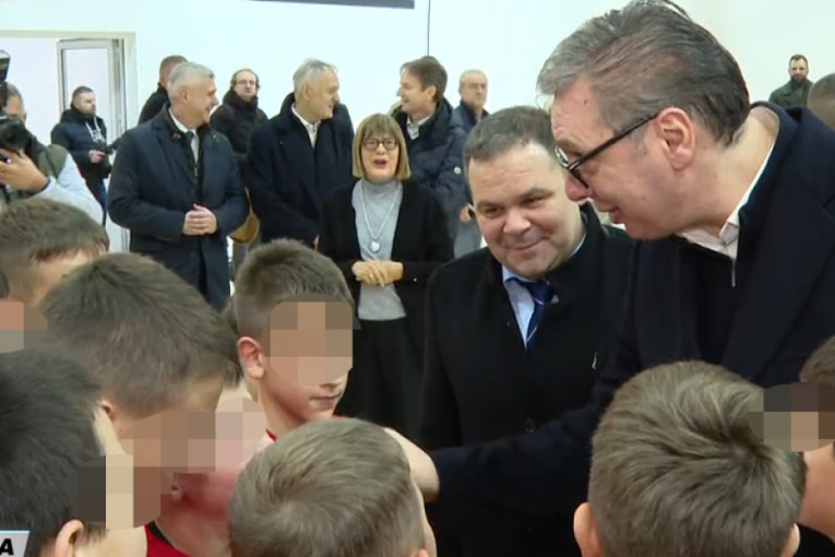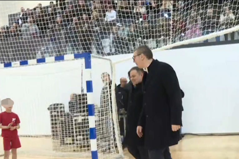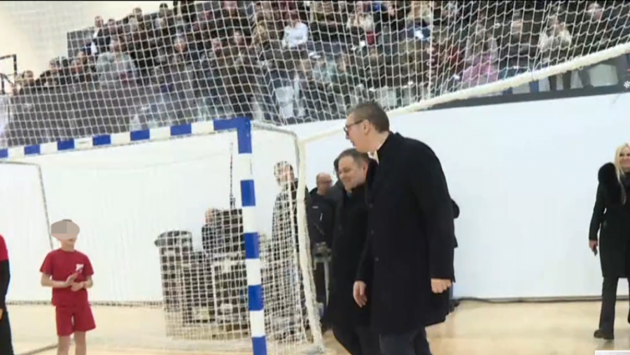 Predsednik je nakon obraćanja obišao hali i porazgovarao sa tinejdžerima koji u njoj treniraju rukomet i košarku.