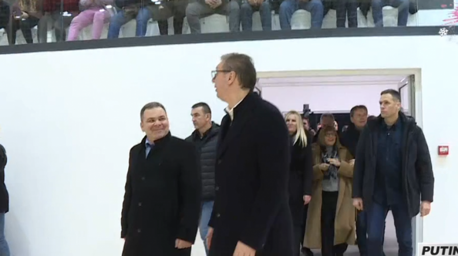 Predsednik Srbije Aleksandar Vučić prisustvovao je svečanom otvaranju sportske hale u Putincima, kod Rume.