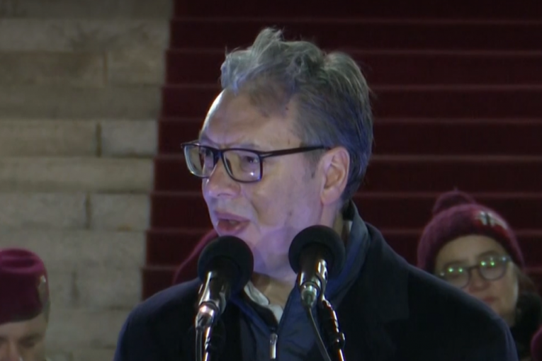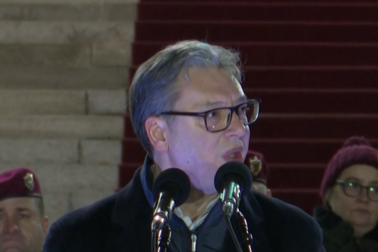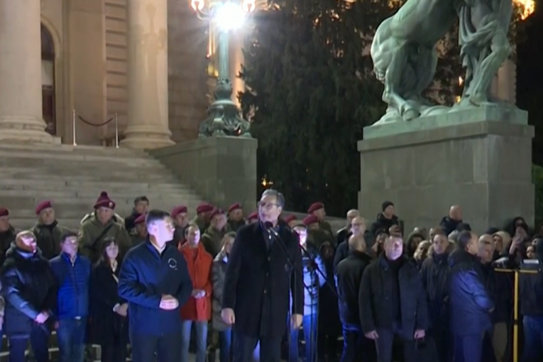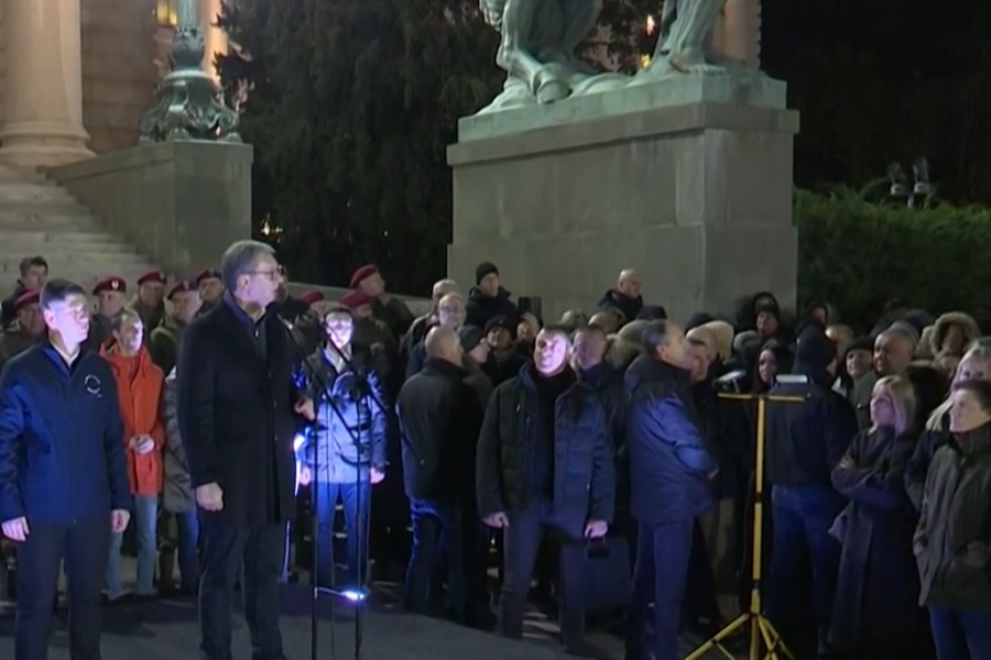 Predsednik Srbije Aleksandar Vučić obratio se večeras građanima ispred Narodne skupštine iz takozvanog ćacilenda.