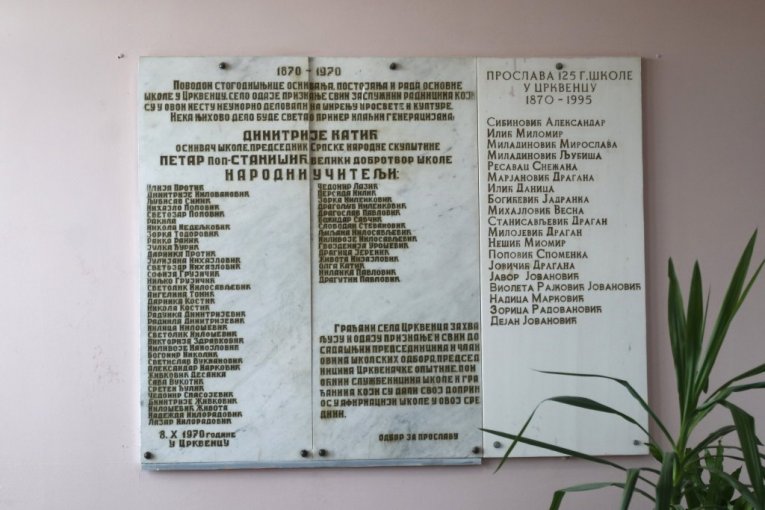- Ova škola poznata je još i po tome što je ovde rođen otac našeg predsednika Aleksandra Vučića 1941. nakon što su članovi porodice izbegli iz BiH. Ovde je došao s majkom i rođen je baš u ovoj školi. Inače, žitelji Crkvenca očekuju da on dođe u ovo selo, mislim da bi bili dobri domaćini. Imali smo čak jednu inicijativu u selu, jedno pismo doneto meni da se preda ocu predsednika, pa ga evo javno pozivam da dođe da obiđe opštinu Svilajnac, selo Crkvenac i kuću gde je posle rođenja živeo nekoliko godina. Mislim da bi za ove ljude to bila velika čast.