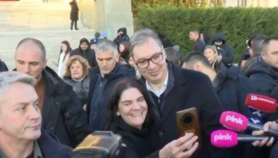 Na platou ispred Skupštine se okupio veliki broj građana koji su želeli da predsedniku čestitaju Novu godinu, da ga pozdrave i da se sa njim slikaju.