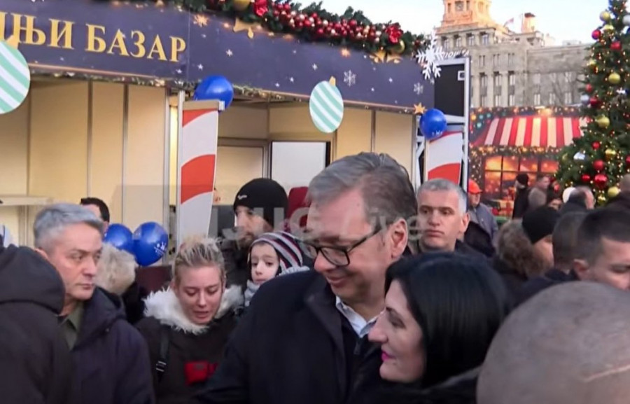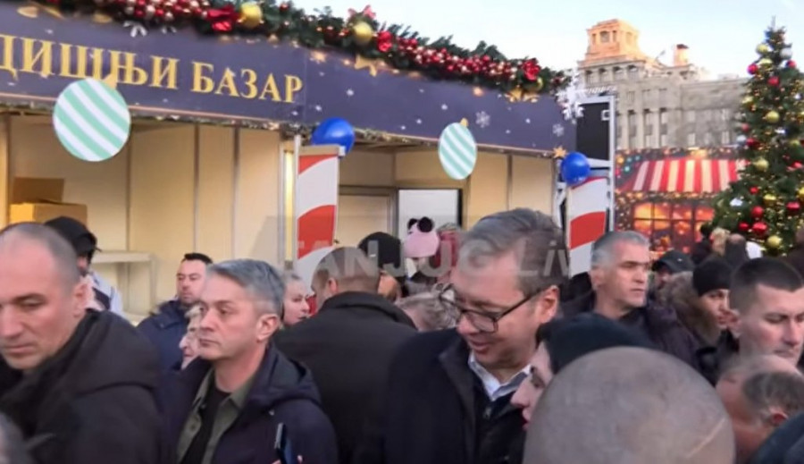 Predsednik Srbije Aleksandar Vučić prvog dana nove 2026. godine obilazi Božićno seoce ispred Skupštine Srbije.
