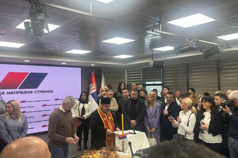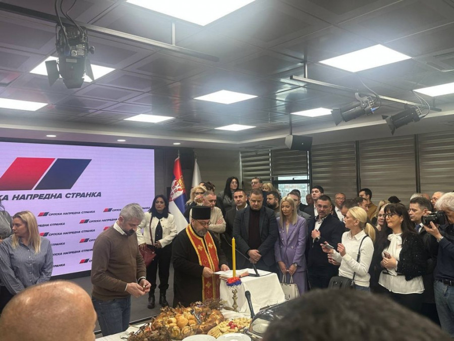 Srpska napredna stranka obeležava danas Badnji dan tradicionalnim unošenjem badnjaka u svoje prostorije u Beogradu. Obred je započeo unošenjem badnjaka u sedište stranke, nakon čega je sveštenik očitao molitvu.
