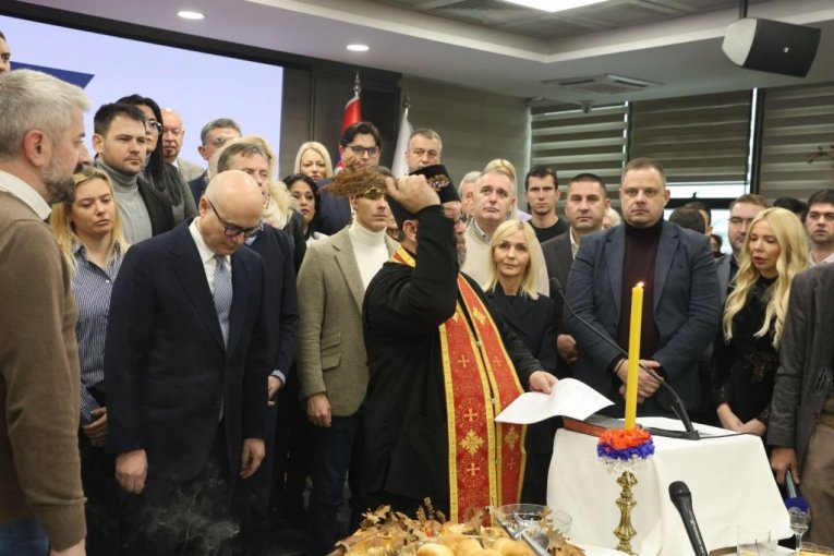 SNS OBELEŽAVA BADNJI DAN U DUHU TRADICIJE I ZAJEDNIŠTVA! Unet badnjak u sedište stranke, sveštenik očitao molitvu uz prisustvo velikog broja zvaničnika! (FOTO, VIDEO)