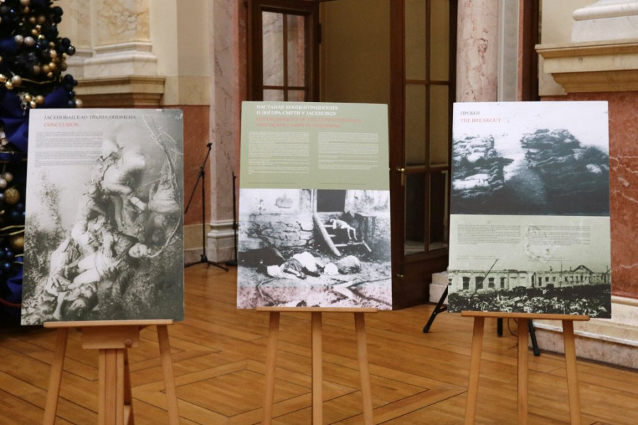Povod je 80. godišnjica oslobođenja logora Jasenovac herojskim probojem zatočenika, a izložba posvećena i Međunarodnom danu sećanja na žrtve Holokausta (27. januar) trajaće do kraja meseca. Postavka ima dve celine - prva se bavi ustaškom bolnicom u Jasenovcu, a druga samim logorom tokom njegove mračne istorije od avgusta 1941. do maja 1945.