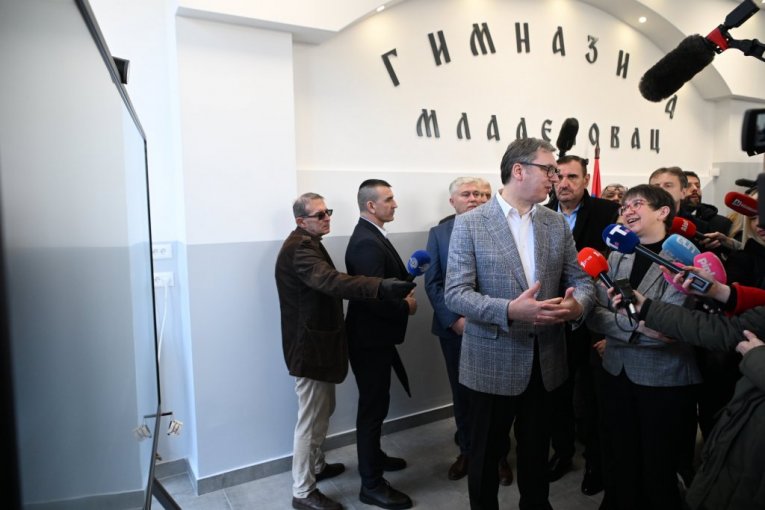 Predsednik Srbije Aleksandar Vučić tokom današnjeg obilaska rekonstruisane gimnazije u Mladenovcu govorio je i goručim temama koje okupiraju region i svet. Bazirajući se na vojni savez Hrvatske, Albanije i tzv. Kosova.