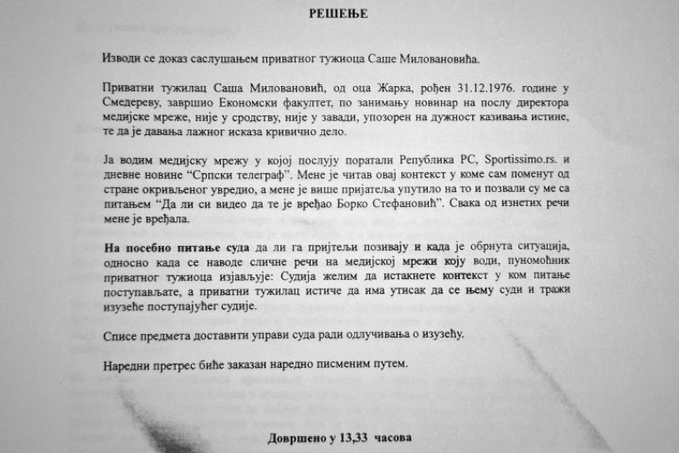 Šokantni detalji sa suđenja Borku Stefanoviću po tužbi direktora "Medijske mreže" Saše Milovanovića!