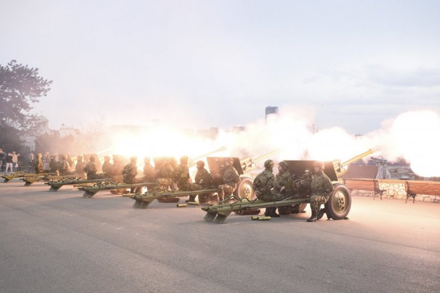 Počasna paljba sastojala se od deset plotuna ispaljenih iz šest artiljerijskih oruđa, čime je na svečan način odata počast jednom od najznačajnijih datuma u novijoj istoriji Srbije.