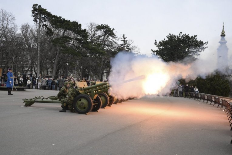 Pripadnici Garde Vojske Srbije izveli su danas počasnu artiljerijsku paljbu sa Savskog platoa na Kalemegdanu, povodom obeležavanja Dana državnosti Republike Srbije koji se slavi 15. februara.
