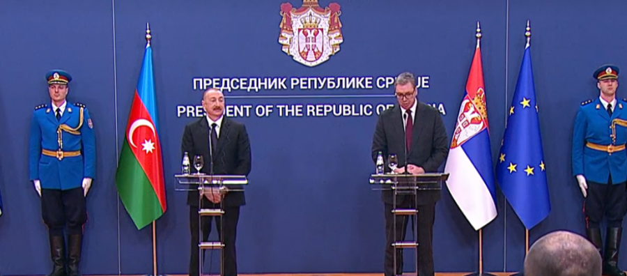 Alijev je na konferenciji za medije naglasio da se u Srbiji oseća kao kod kuće i uputio poziv predsedniku Vučiću da poseti Azerbejdžan.