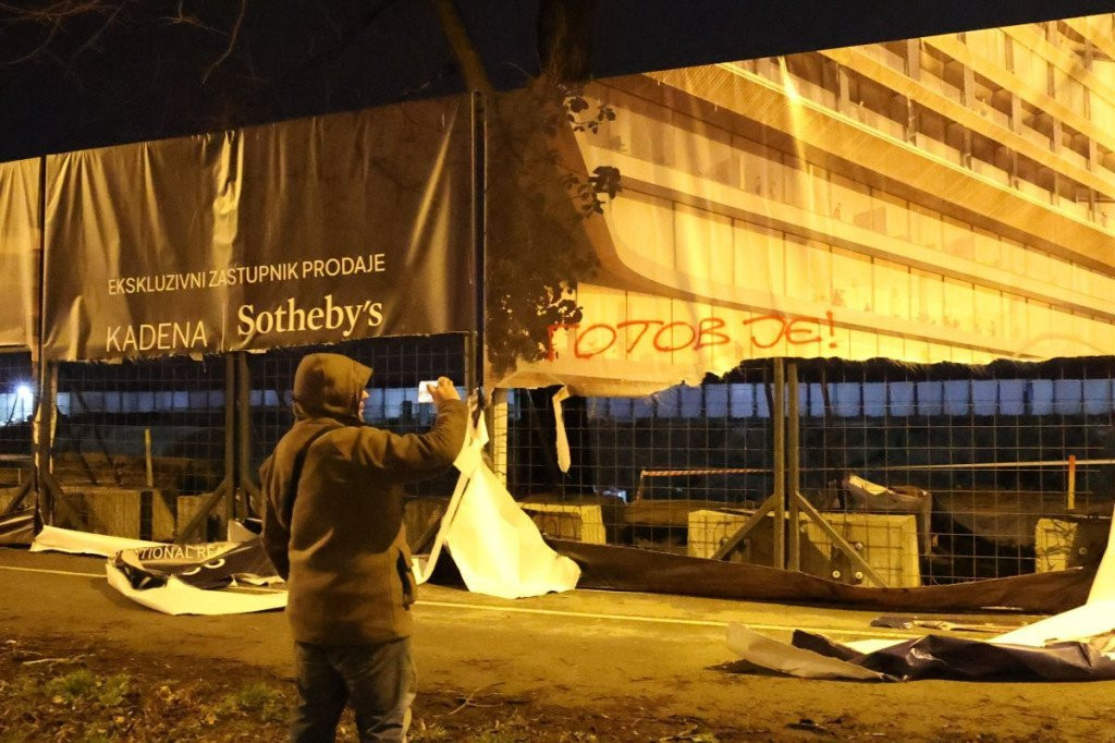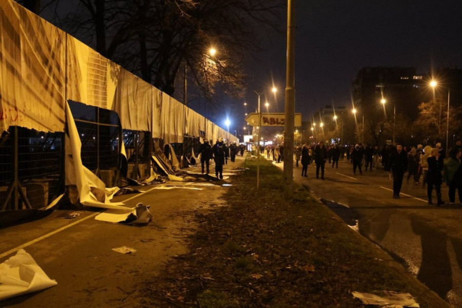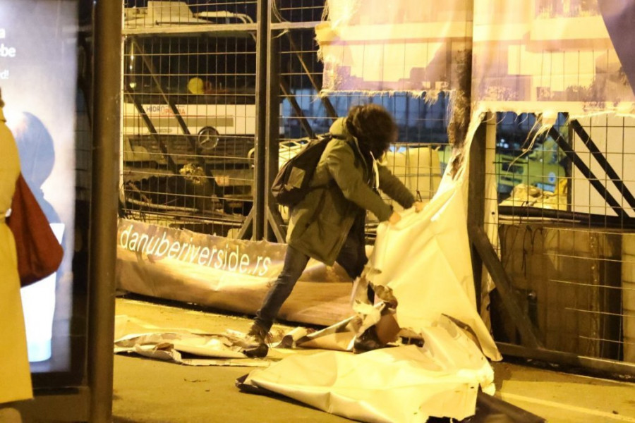 Grupa blokadera izazvala je večeras nerede na Novom Beogradu gde su uništavali i cepali plakate sa reklamom za izgradnju novog akvarijuma, a zatim su obarali delove zaštitne ograde kod Ušća.