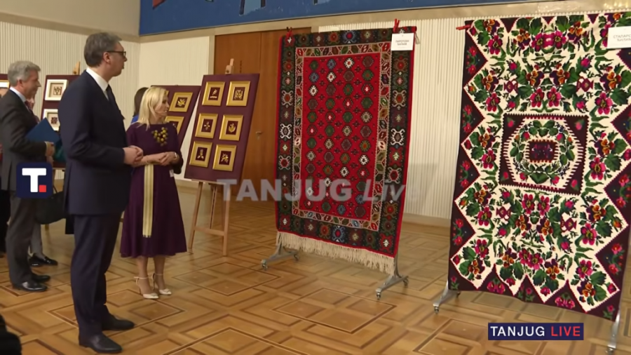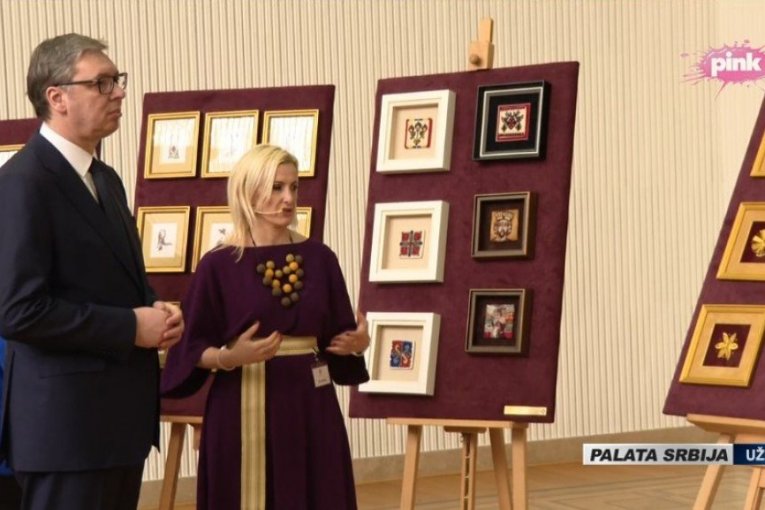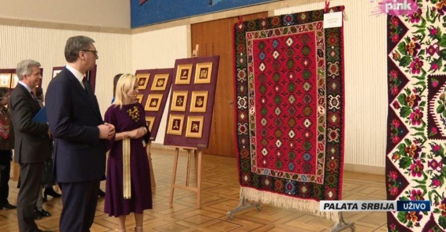 - Narod smo koji poštuje svoje nasleđe i umemo da ga predstavimo svetu. Kulturna diplomatija je u niti koja spaja narode. Zahvaljujem Vam se, ekselencijo. Naša obaveza je da jačamo žensko preduzetništvo. Podaci koje sam dobio juče a koji se tiču zanata, veoma su poražavajući, odnose se na mladu generaciju. Dozvolite mi da kažem da naša državotvornost počiva na našoj kulturi, sa ponosom proglašavam izložbu otvorenom. Živela Srbija - rekao je predsednik.