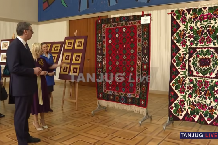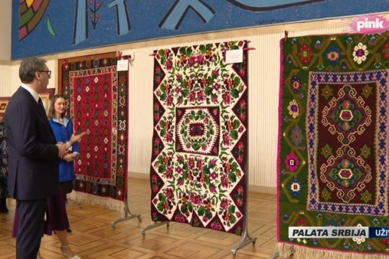 - Svaki od ovih motiva ima svoju priču - rečeno je Vučiću, dok su prikazane minijature i ćilimi, među kojima najprepoznatljiviji Pirotski ćilim.