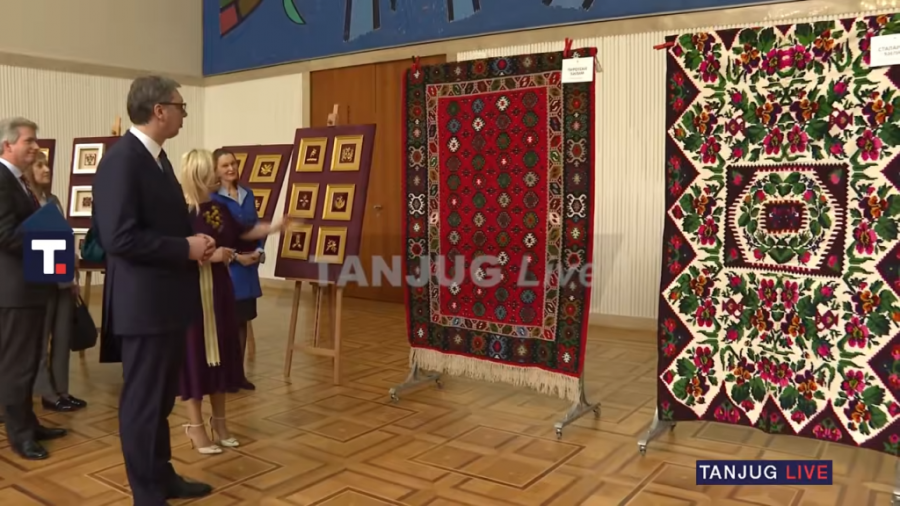 Predsednik Srbije Aleksandar Vučić prisustvovao je otvaranju izložbene postavke elemenata upisanih u Nacionalni registar nematerijalnog kulturnog dobra "Niti državnosti".