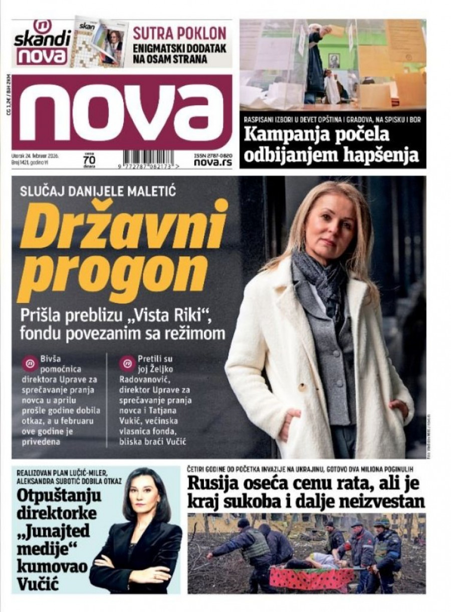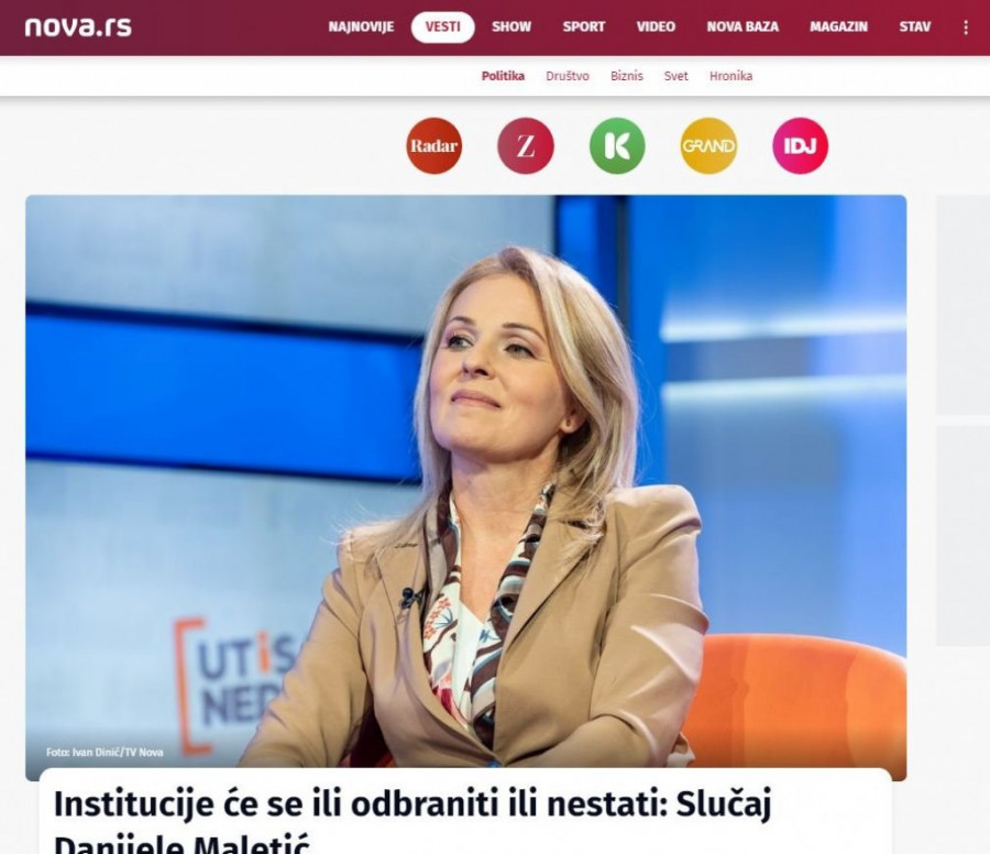 Tako je Maletićeva, bivša pomoćnica direktora Uprave za sprečavanje pranja novca, proteklih dana zaređala upravo po šolakovskim medijima, od nedeljnika Radar preko emisije "Utisak nedelje" do listova i portala Danasa i Nove, gde je juče valjda zato i zaslužila celu naslovnu stranu. Ona na sav glas kuka na vlast i predstavlja se kao navodna žrtva režima. Na njenu žalost, brojke ne lažu...