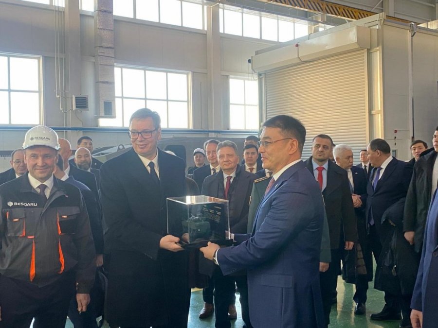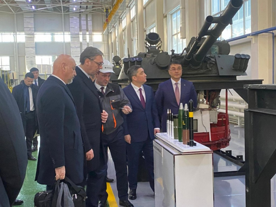 Predsednik Srbije Aleksandar Vučić, koji boravi u zvaničnoj poseti Kazahstanu na poziv kazahstanskog predsednika Kasima Žomarta Tokajeva, sa srpskom delegacijom obilazi u Astani vojnu izložbu kazahstanske kompanije namenske industrije.