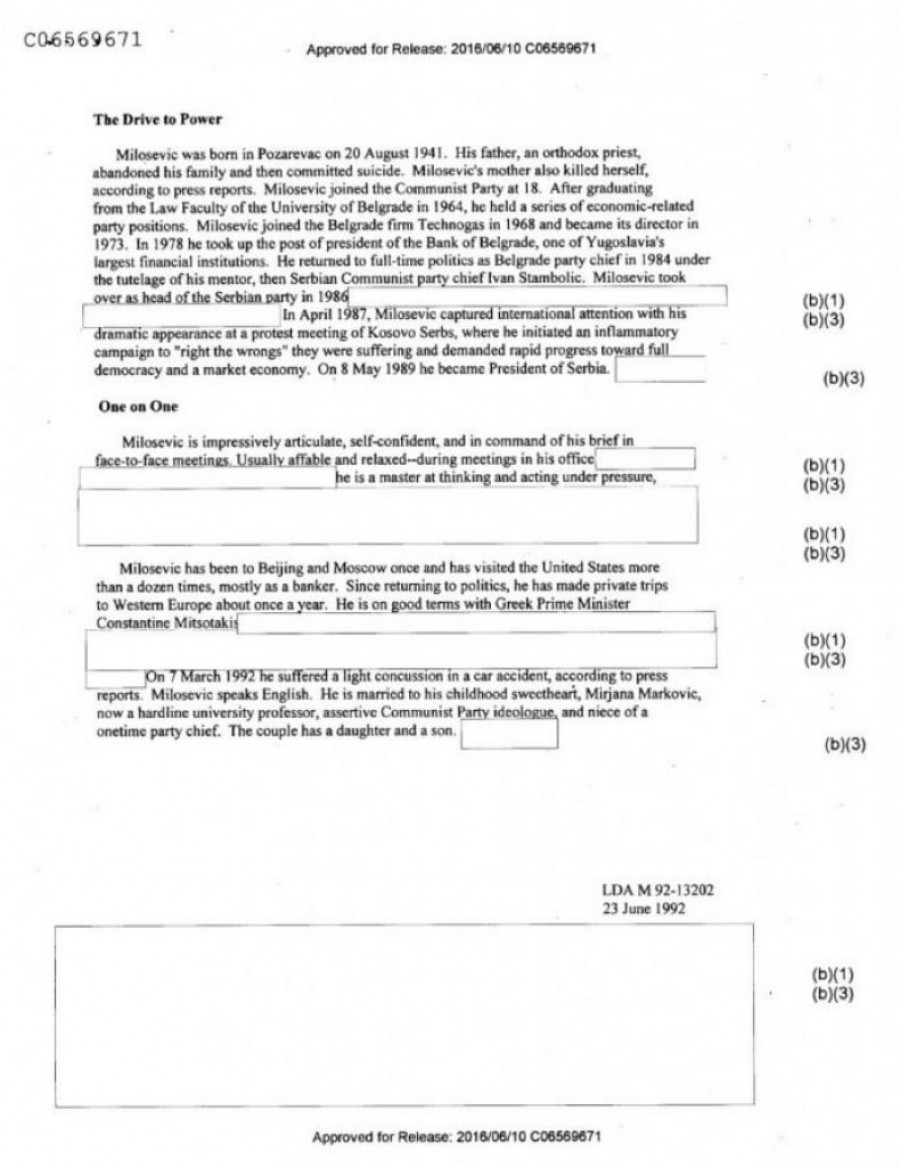 Ovako je CIA videla Slobu