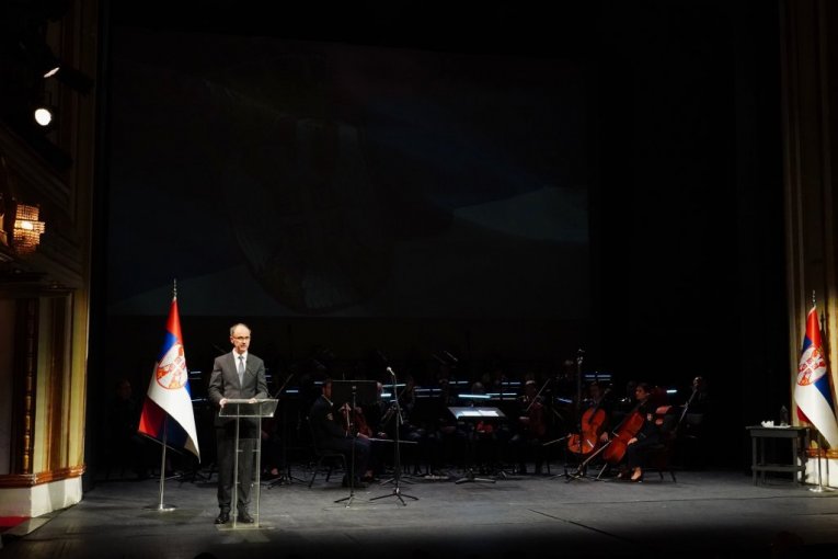 Komemorativna akademija počela je himnom Srbije "Bože pravde", a akademiju organizuju vladin Odbor za negovanje tradicija oslobodilačkih ratova Srbije u saradnji sa Narodnim pozorištem u Beogradu.