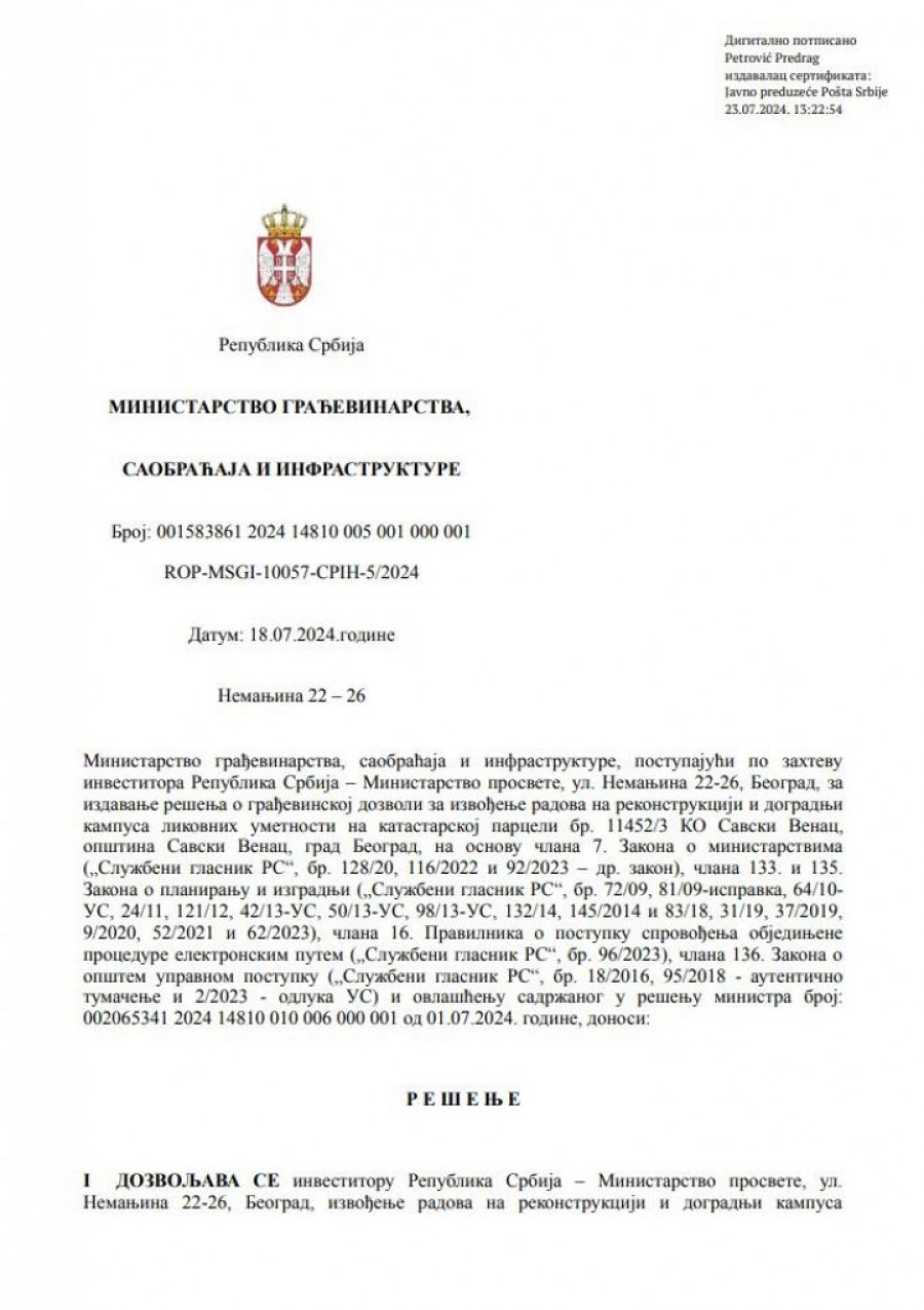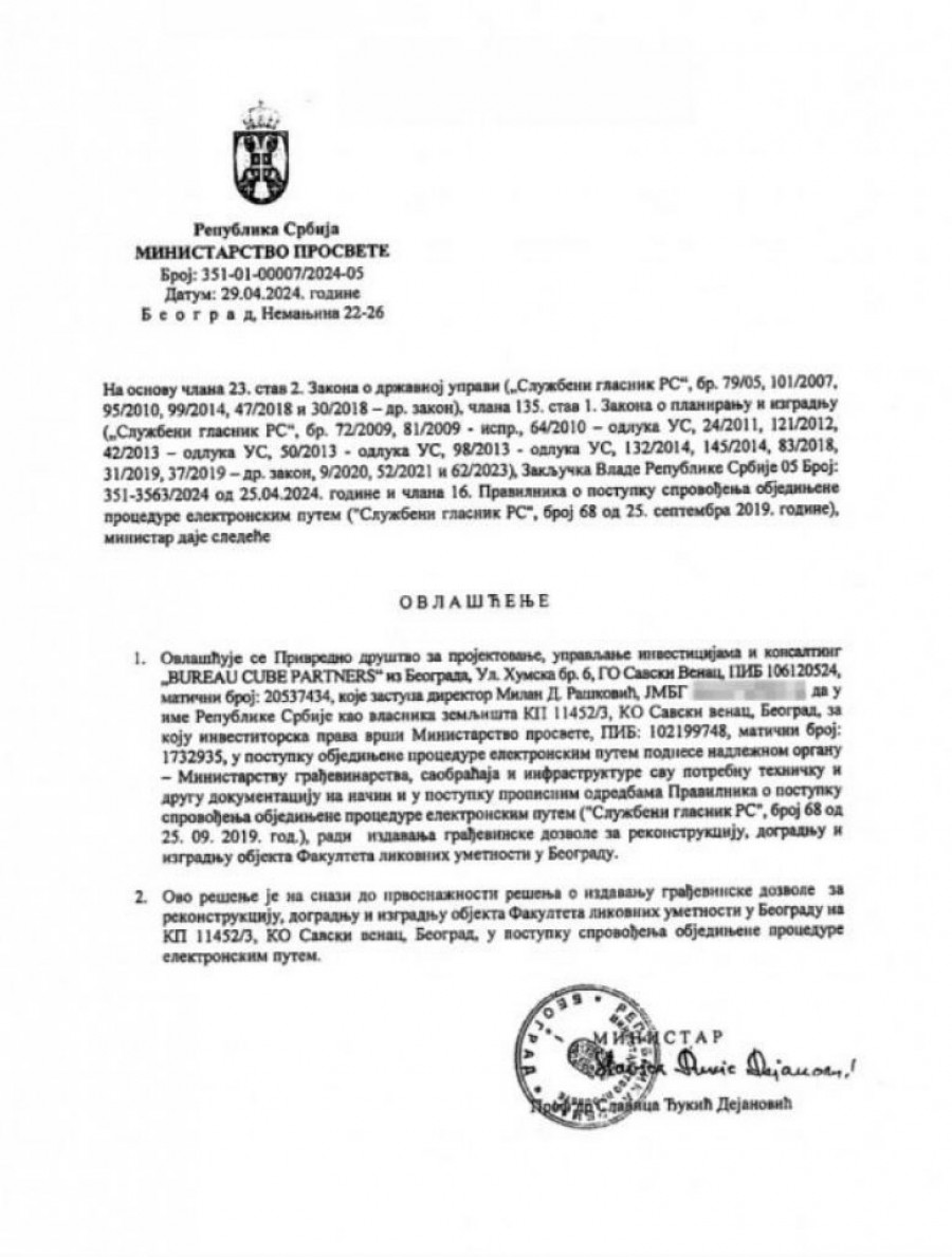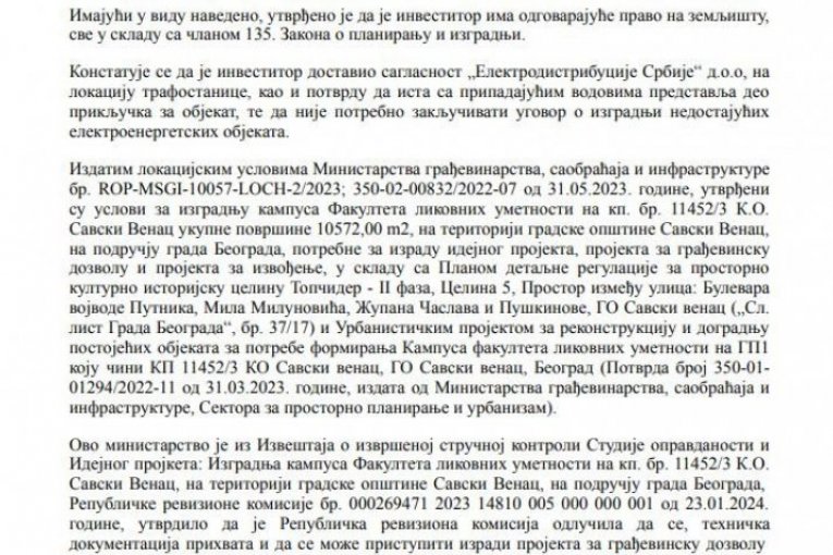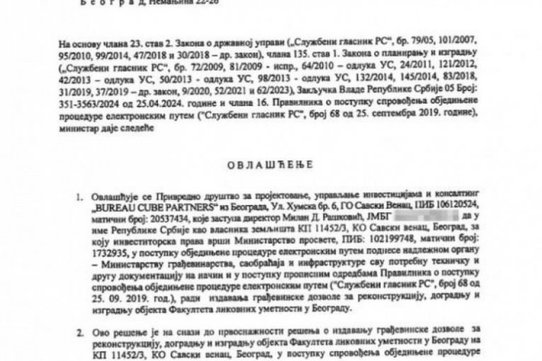 Podsetimo, projekat rekonstrukcije i dogradnje Fakulteta likovnih umetnosti u Beogradu (FLU) pretvorio se u aferu nezapamćenih razmera, upravo zbog (ne)činjenja UNDP. I tako, umesto da sve bude odavno završeno, radovi stoje i biće nastavljeni tek kada arhitektonski studio "Bureau Cube Partners", koji je nosilac građevinske dozvole, dobije svoj novac i krene dalje s projektom.